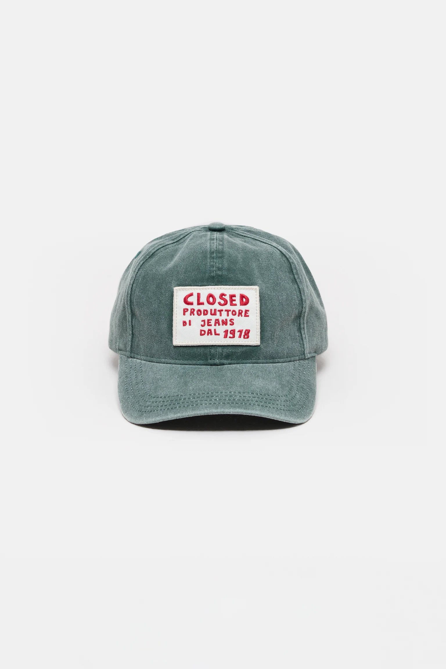 Deze katoenen pet met zes panelen heeft een verwassen look en is voorzien van een "Closed proputtore di jeans"-patch. Verstelbare band.